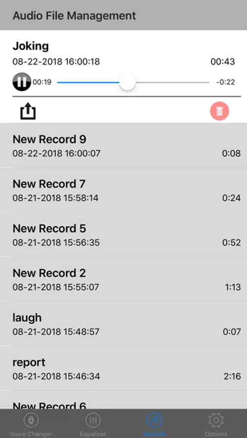 It's a perfessional voice recorder too. With the voice-changing function and reverb effect function, you can record very special audio files. And you can share the audio to your friends with social apps. Even you can send the playing sound to your friends with talkback function of social apps.