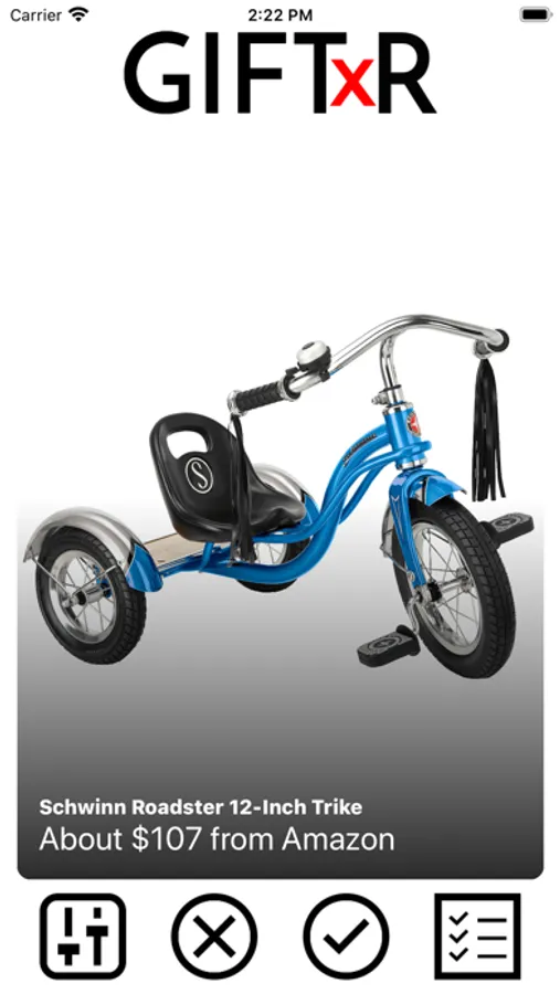 Quickly sort through gift ideas based on price and recipient guidelines you create and adjust. With GIFTxR, you say "no" by swiping left or hitting the "no button" and those gift ideas are removed. You say "maybe" to ideas by swiping right or hitting the "maybe button" -this will put the gift ideas into a tight list of possible options you can sort through when making your final gift decision.