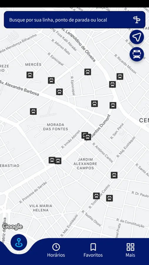 - Localização em mapa dos pontos de parada e de venda de créditos nas proximidades