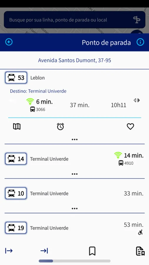 - Favoritar linhas. pontos de parada e deslocamentos planejados