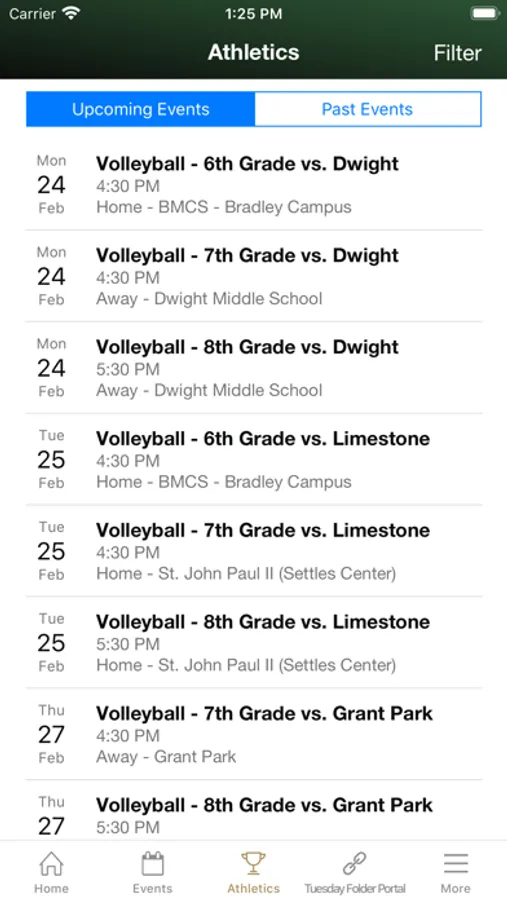 • Review athletic event details