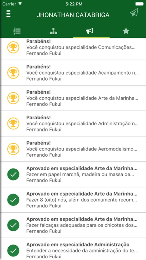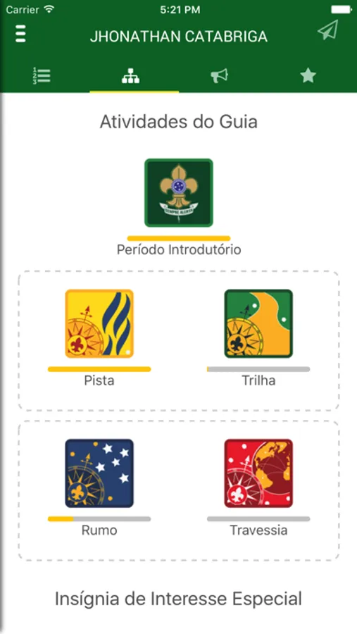 - Saiba quando Conquistou uma insígnia, distintivo ou especialidade! Você receberá notificações quando o Escotista aprovar suas atividades.