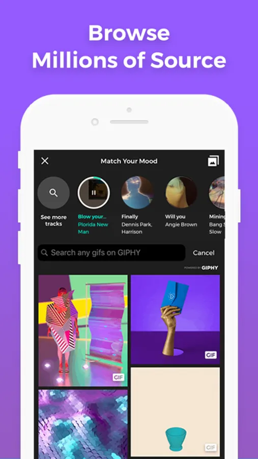 ◾ Add songs to any video, gif, or photo. Choose from over 30M+