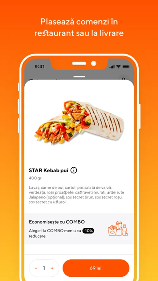 Cu noul meniu, ai mai multă libertate în alegeri! Alege produsul preferat, comandă-l în COMBO și ai cel puțin 10% reducere la valoarea acestuia!
