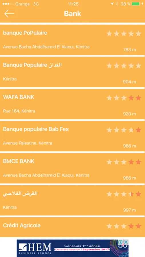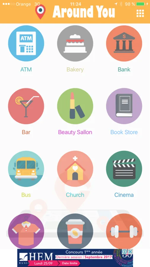 aroundme shows you a complete list of all the businesses in the category you have tapped on along with the distance from where you are.