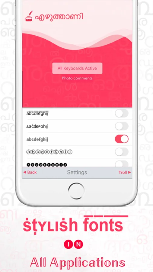 • Malayalam script keyboard shows Malayalam layout. 4 different layouts to choose. Even a beginner can easily keep track of the keys.