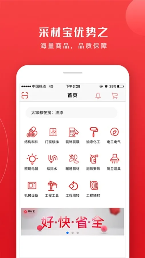 【材料保障】商城材料上线十四大类、两百四十多个小类、海量商品,覆盖建筑施工采购的全部需求;