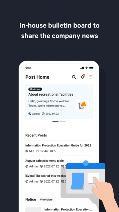 - You can process various tasks on your mobile device, including the following: search employees, compose and process approval documents, create and view bulletin boards, and process attendance.