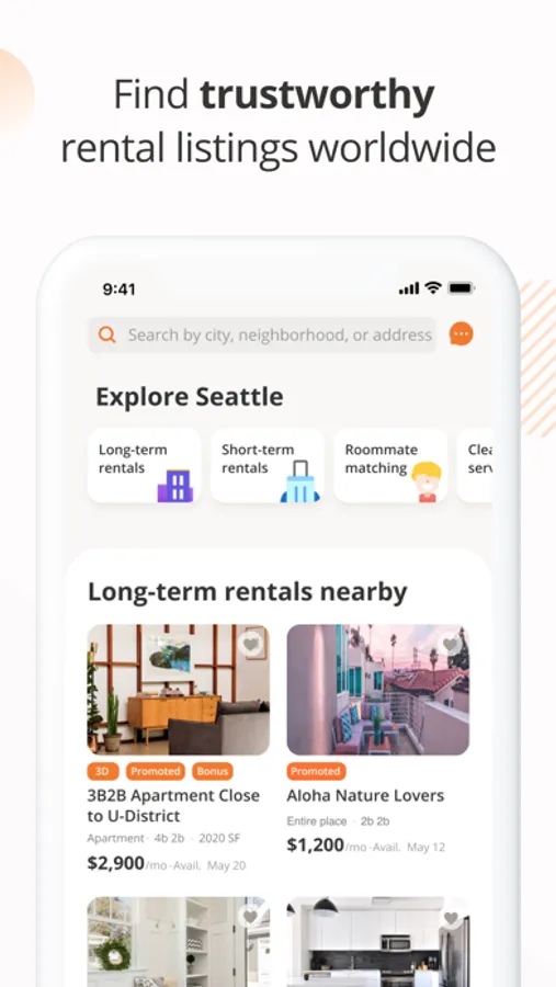 • Find reliable long-term and short-term rentals for your next journey.