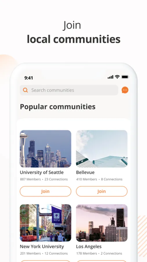 • Join or create local communities and connect with people of similar interests.