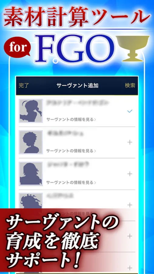 使い方はとてもカンタン!育てたいサーヴァントを選択するだけ。
