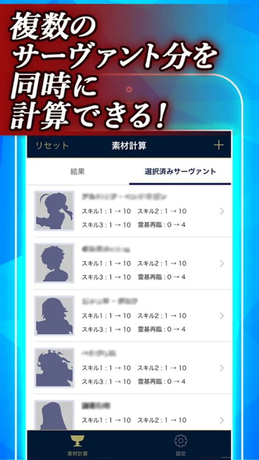 サーヴァントを複数育成するのに必要な素材数を、合計して表示することも可能です。