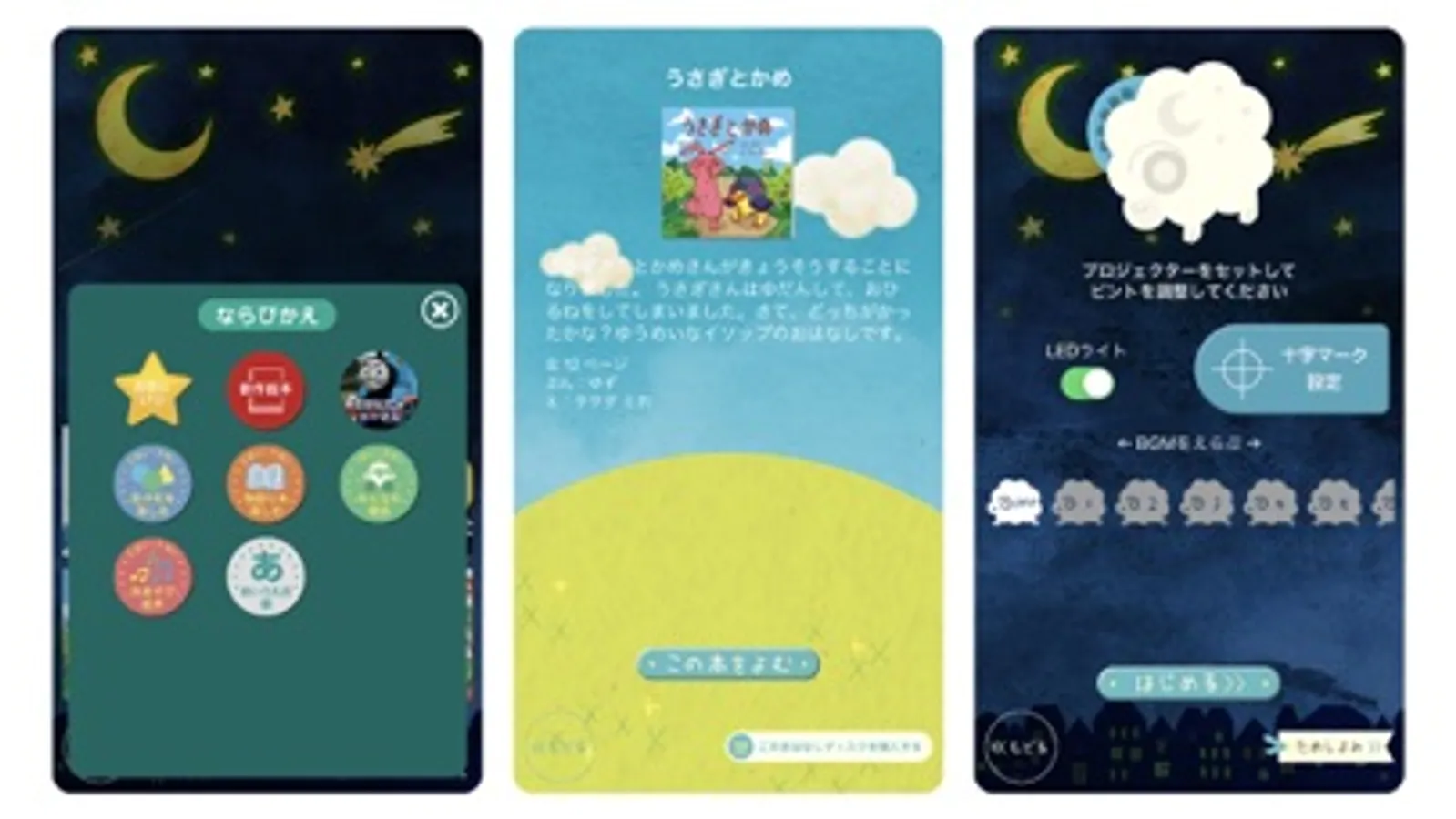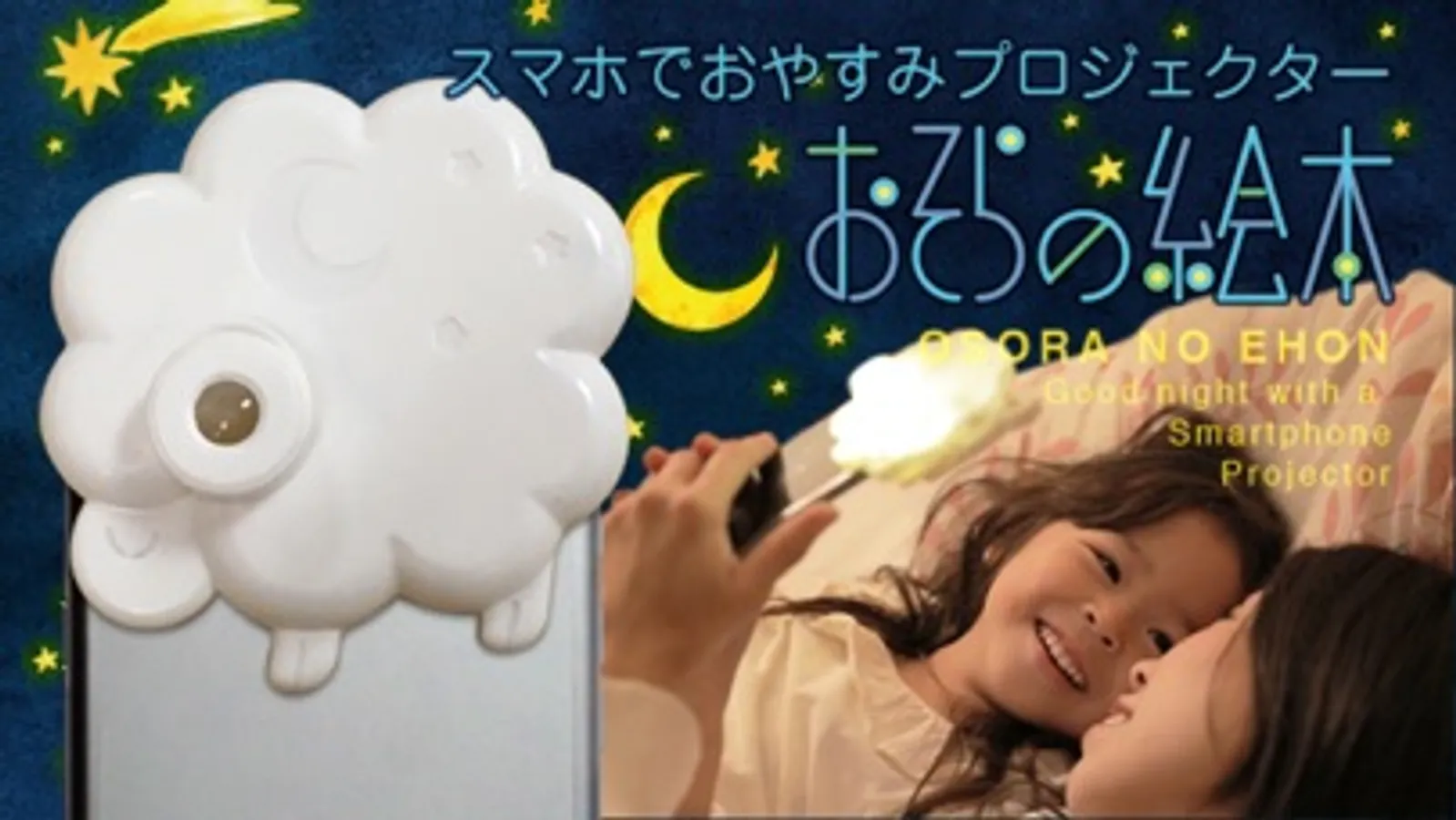 「おそらの絵本」は、スマホと専用プロジェクターを使って天井に絵本の世界を投影させる絵本プロジェクターです。