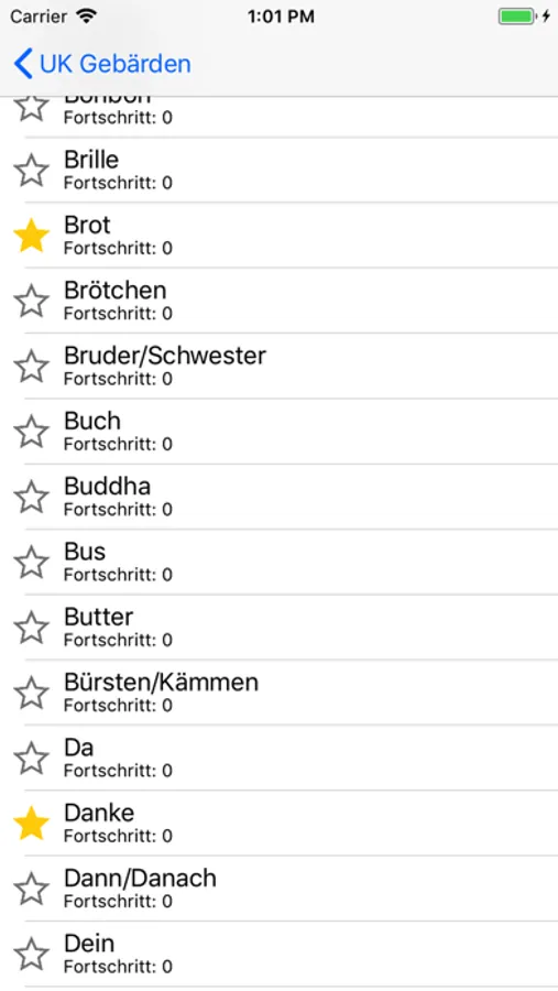 - Einem Katalog, in dem die Gebärden durchsucht und Favoriten markiert werden können