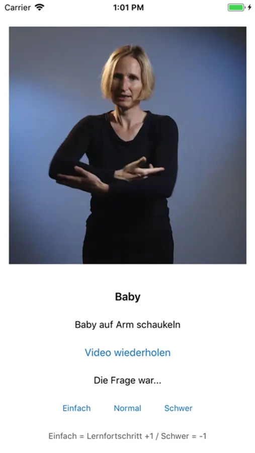 - Einem Trainer, mit dem die Gebärden in zwei Lernmodi gelernt werden können