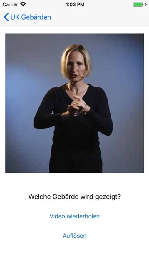 - Einem Videoplayer, mit dem die Videos zu den Gebärden angeschaut werden können