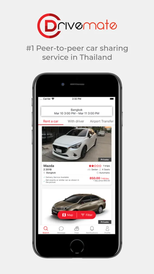 Drivemate is #1 peer-to- peer car sharing service in Thailand
