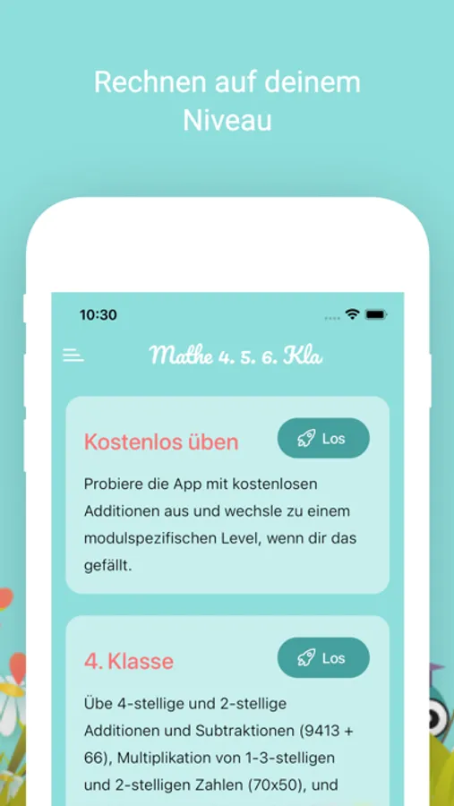 Von der 4. bis zur 6. Klasse deckt die App eine breite Palette von Mathematikthemen ab, wie zum Beispiel:
