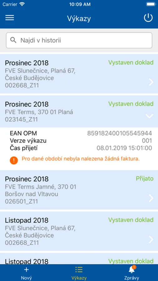 Aplikace nepodporuje výrobní zdroje se zvolenou formou podpory Zelený bonus – hodinový, rozšířené výkazy a výkazy pro více napěťových hladin.