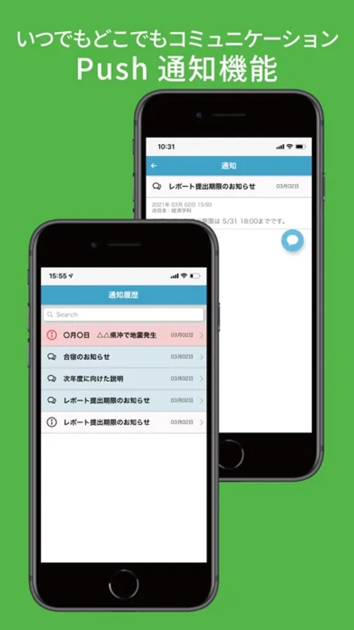 学校、スクール、会社など所属組織からの連絡がPush通知で受け取れます。