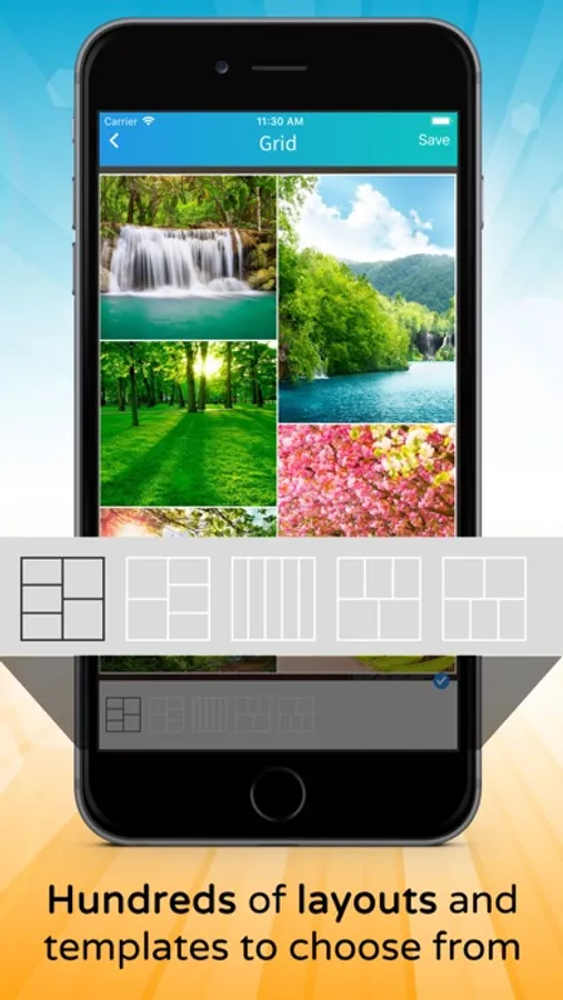 upload up to 100 photos, so almost like unlimited pictures with over 150 frames available to choose and make collage of photo