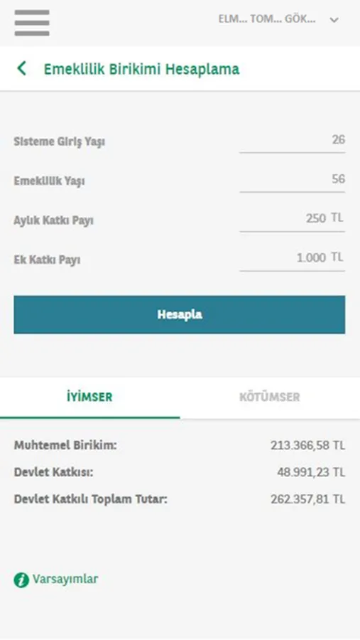 In the subpages, for pension funds, detailed information like monthly contribution, additional one time contributions, government contribution etc. can be found. For insurance products , details like amount of coverage per policy , amount of premium and payment history etc. can be found in the insurance submenu. Three transaction can be performed in total which are all related to pension funds contracts. Changing the amount of monthly payment , changing the fund distribution in a pension funds contract, taking the request of cancellation for a funds contract within the first two months. In addition to these features, application also includes a simulator for customers to predict the total savings for a pension funds contract by inputting different parameters i.e. starting age, retirement age, monthly and additional interim payments.