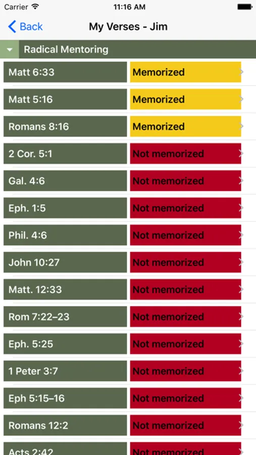 Here’s help for memorizing key verses in the Radical Mentoring program. See, say and record the verses, and play several games to help you commit verses to memory. Tracks memory and review status for multiple participants and gives points for their memory/review activity. Shares memory status information across multiple devices via iCloud.