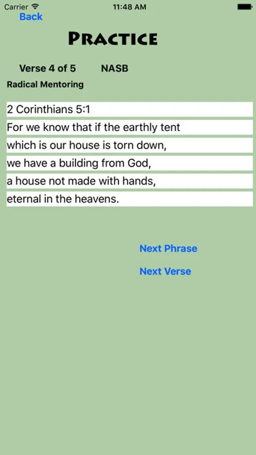 - Verses are currently available in NASB, ESV, and KJV