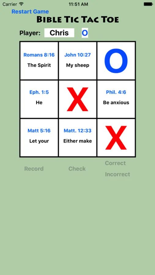 - Combine the strategy of TicTacToe with the verses you know best to win the game and block your opponent
