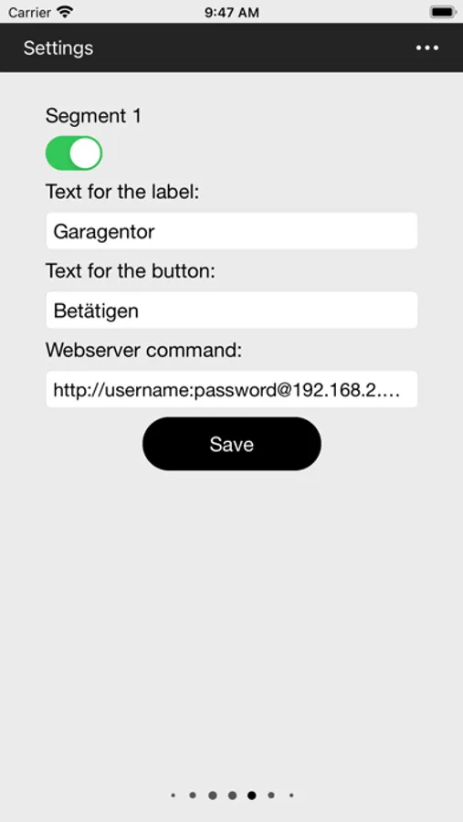 -An example of a webserver command with authentication is already stored as a default value in each segment.