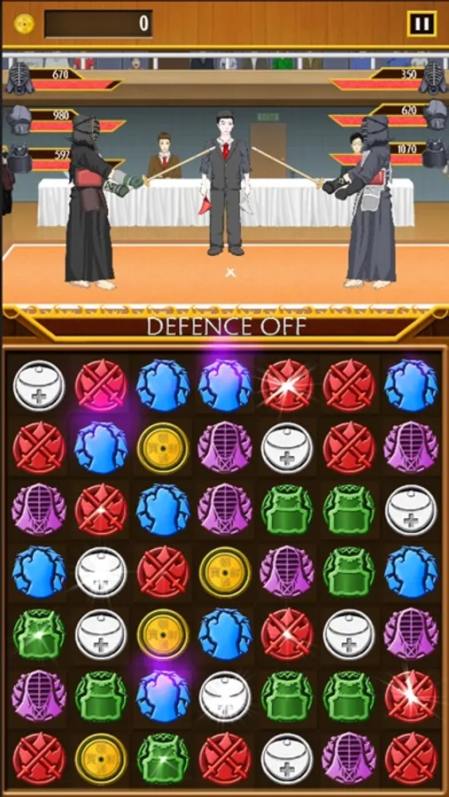 The battling matching game. Match 3 or more Kote’s, Men’s, or Do’s to deplete your opponents energy and score a point. You can also match 3 or more “Block’s” or health’s to protect yourself and regain lost energy. Kendo shiai rules apply the first person to score two points wins the game.
