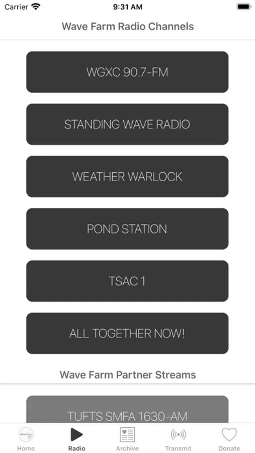 Wave Farm transmit and WGXC broadcast partners can transmit their own live audio streams for app users to access. Website visitors will also have access to the streams at wavefarm.org/listen and wgxc.org/listen.