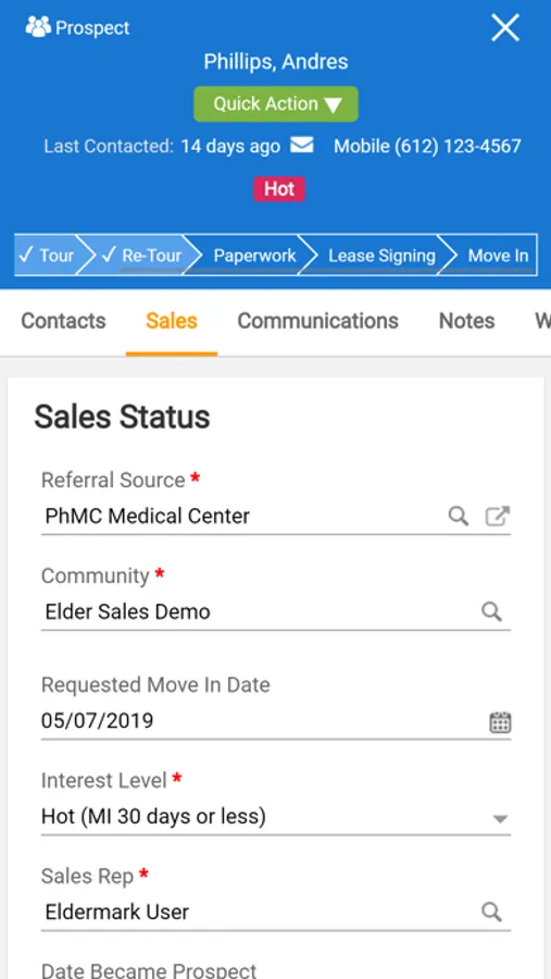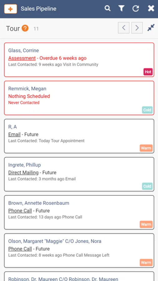 -A dynamic sales pipeline with the the ability to visualize prospects by stage of sale, interest level, and last communication