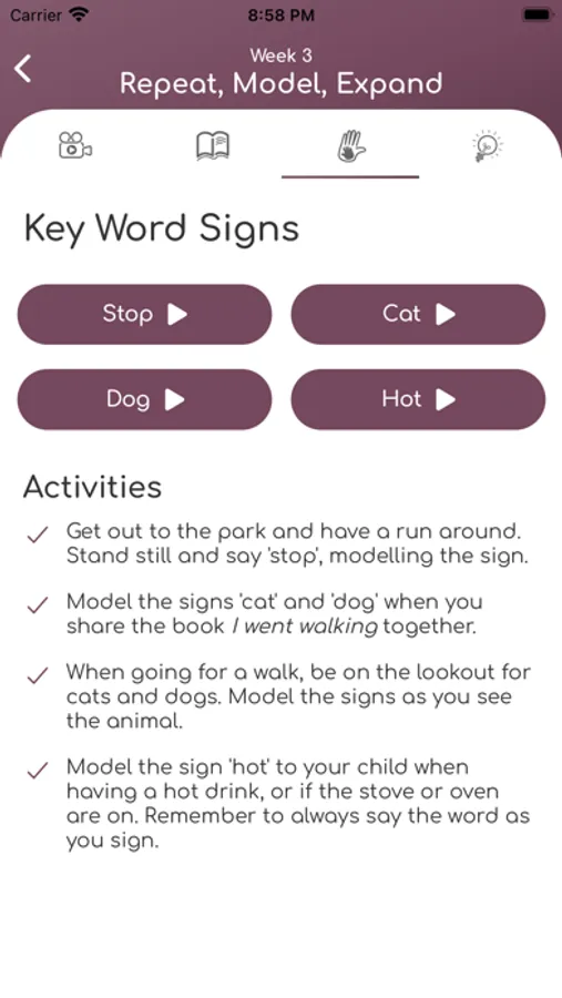 This app is for all parents, carers and early childhood educators who care for a child 0 to 3 years. You will also find this app useful if your child is late to talk.