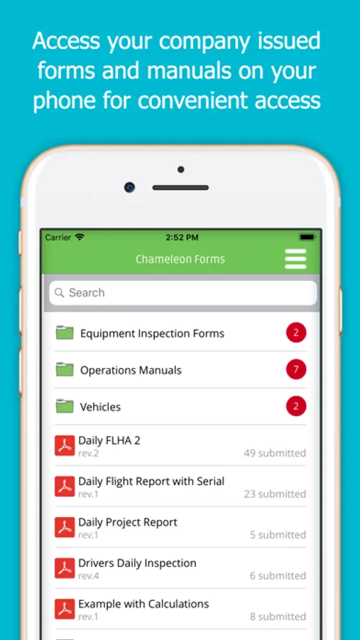 Chameleon Forms is an app with a web based management system that lets companies upload their own PDF forms and organize documents and forms from a web based administration system.