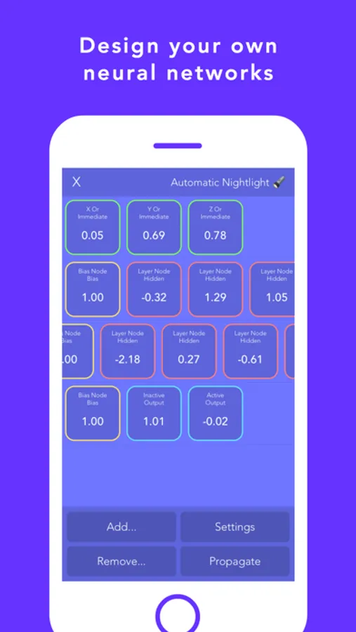 - Add input nodes that are updated with sensor data, stock prices, cryptocurrency prices, microphone data, or many other sources