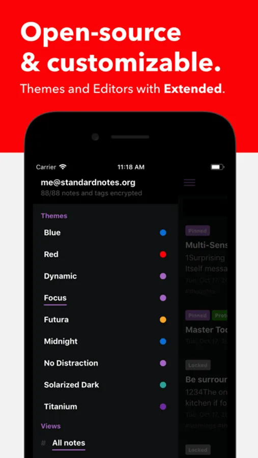 Standard Notes is completely open-source, which means when we say your notes are encrypted with industry-leading XChaCha-20 encryption, and that only you can read your notes, you don't have to take our word for it. Our code is open to the world to audit.