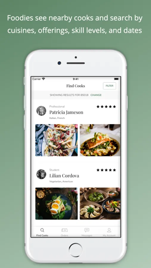We help foodies find local cooks of all skill levels who offer a variety of affordable farm-to-table meals anywhere. Choose from meal prep services, drop-off meals, in-home dining experiences, and interactive classroom lunches. No tip, no tax, no service charge, and no delivery fee.