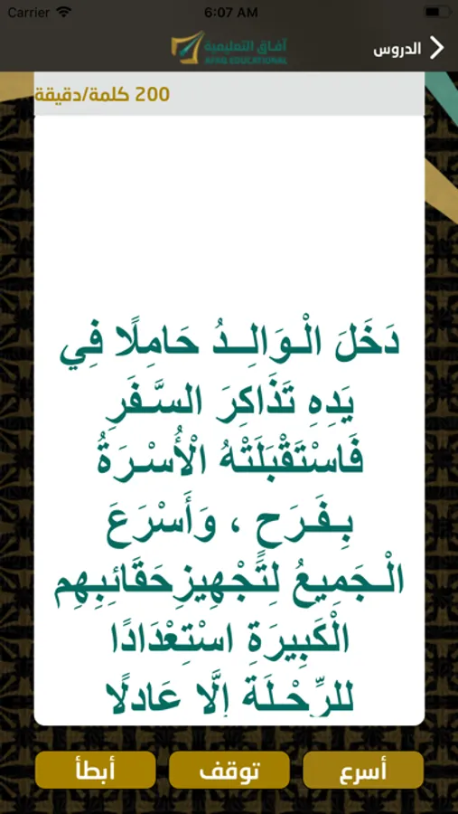 - يمتاز بطريقة عرض فريدة للدروس تمكن الطالب من معرفة سرعته في القراءة .