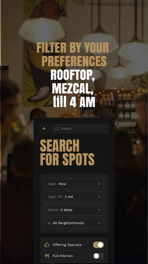 Use the Search to get more detailed results. Search by open times, close times, venue attributes (patio anyone), and neighborhood.