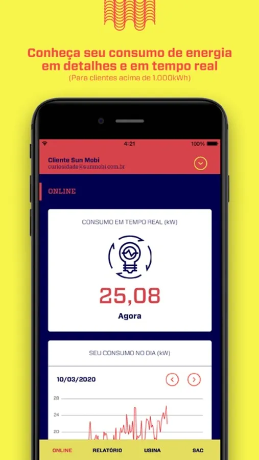 Gerenciar seu uso de energia. Acesse seu dashboard e entenda seu consumo. Você prevê a sua nova conta de luz e não tem surpresas.