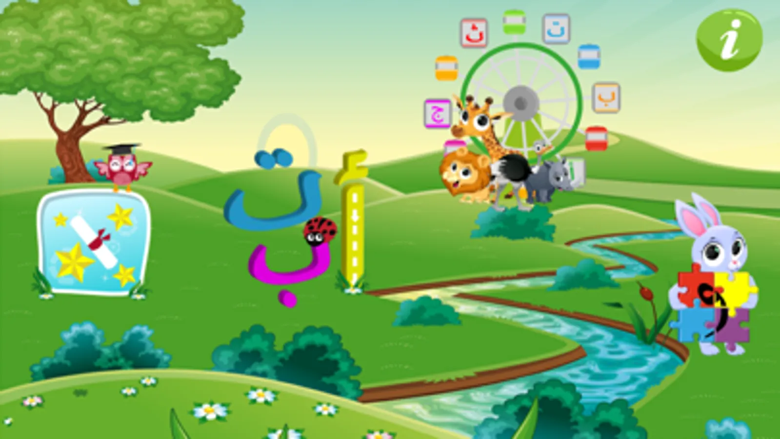 Play and Learn Arabic for Children age from 3 to 7 years, using animal sounds and animals names in Arabic language.