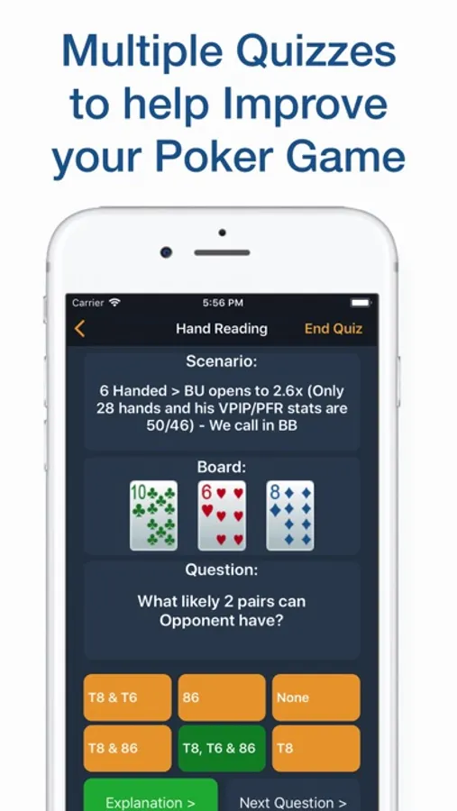 This App allows to practice poker by yourself and improves all aspects of your poker game and strategy, so your decisions in-game become easy and effortless.