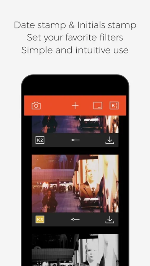 Customize the date and format of the date stamp to make it look like a picture taken a long time ago. You can also make your picture more special with the newly added initials stamp. Easy and simple to set up. Now you can also access it directly from the filter screen.