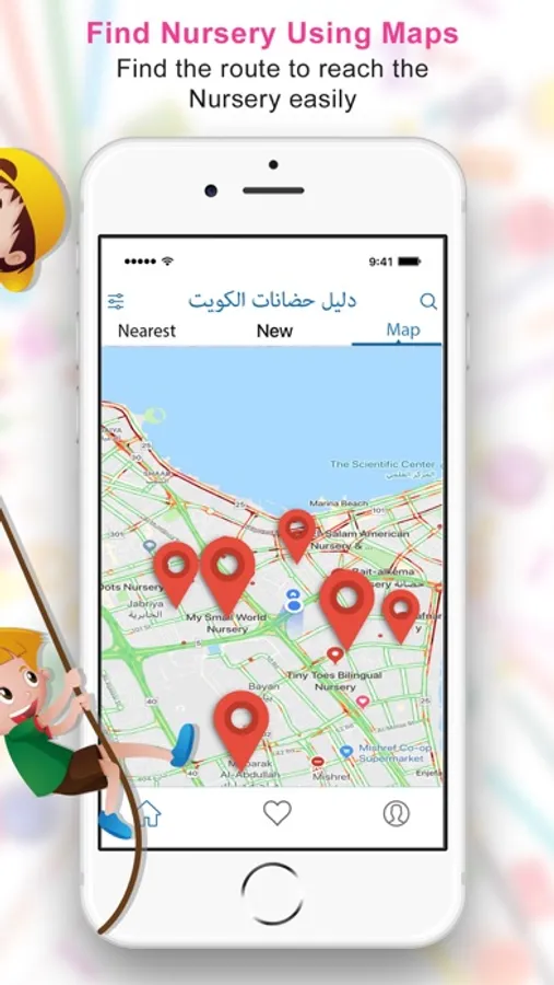عبرهذا التطبيق يمكنك البحث بين العديد من الحضانات التي تتناسب معك ومع أطفالك، كما يتيح العديد من خيارات البحث التي تمكنك من الوصول الي الحضانة المثالية لطفلك.