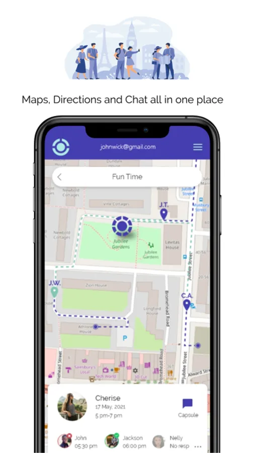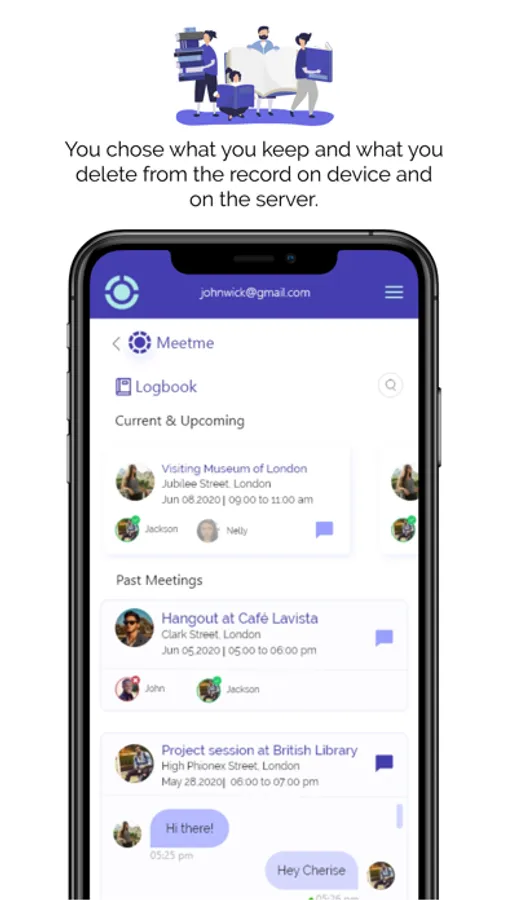 MeetMe allows short sessions location sharing at pre-agreed location without sharing your personal info. It lets you to chat with others on the meeting within a closed group invite while you or the other person is travelling to that location. Everyone on the invite has a choice to receive and accept to share or reject their own routes on the map using directions from maps. Once the meeting has passed, all the tracking information is deleted out of the meeting.