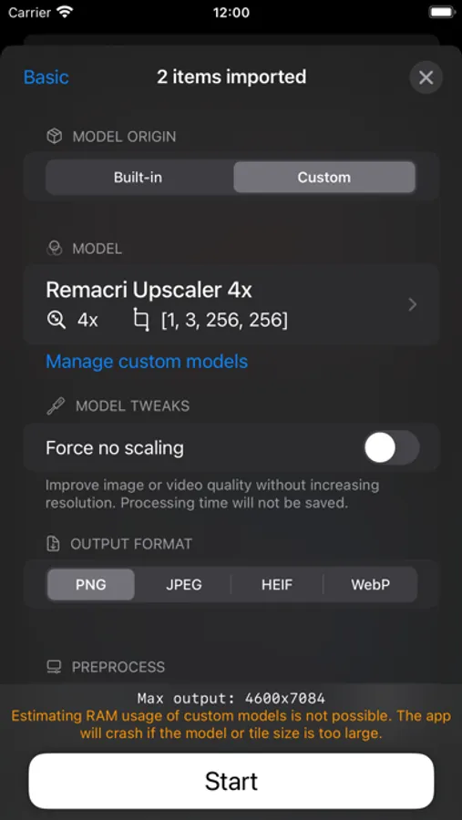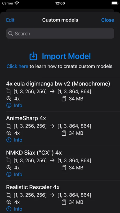 6. Supports custom Core ML models. Import any model to process images for your specific needs.