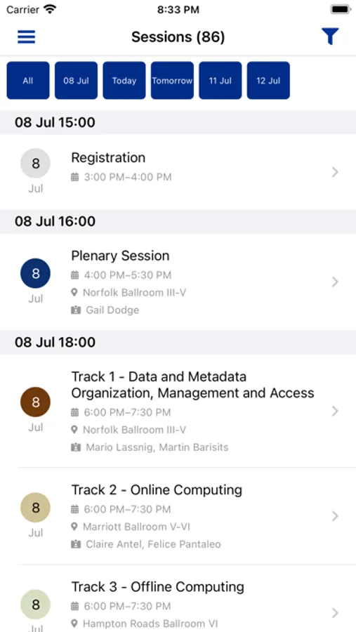 * Preview, rate, filter presentations and add them to favorites and to calendar;