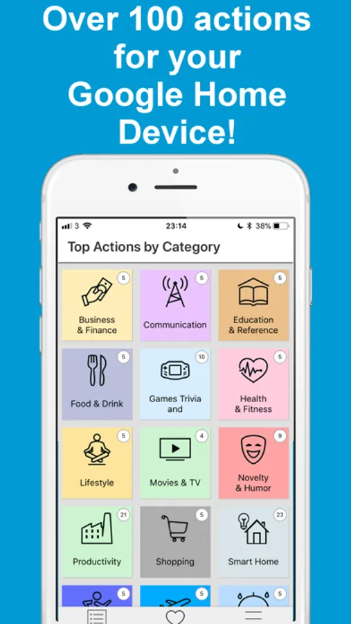 Use the app to create and store your own actions, and send them to your friends, or pick from over 100 different actions that you can ask your Google Home.