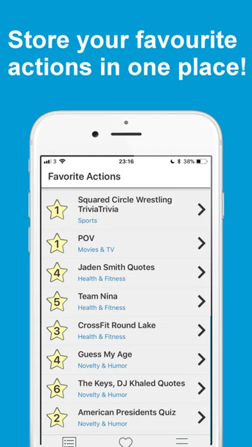 .... and for the ultimate in convenience, use the app to create a favourites list, so that all of your cool actions are stored neatly in one place.